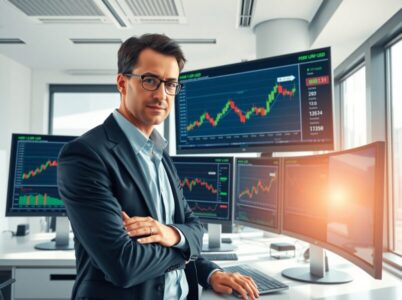 Financial analyst reviewing EUR/USD currency charts showing bullish trends supported by foreign investment inflows